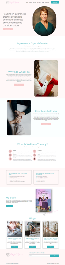 Crystal Grenier’s website is a calm, compassionate wellness space focused on emotional healing, self-awareness, and whole-person transformation. Through wellness therapy, mindful practices, and lived experience, the site invites visitors to slow down, reconnect with themselves, and make intentional choices that support emotional balance, resilience, and lasting well-being.